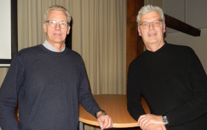 Das Foto zeigt (links) Norbert Daut, der durch die Diskussion führte, und Prof. Dr. Hans Brandt-Pook von der Hochschule Bielefeld
