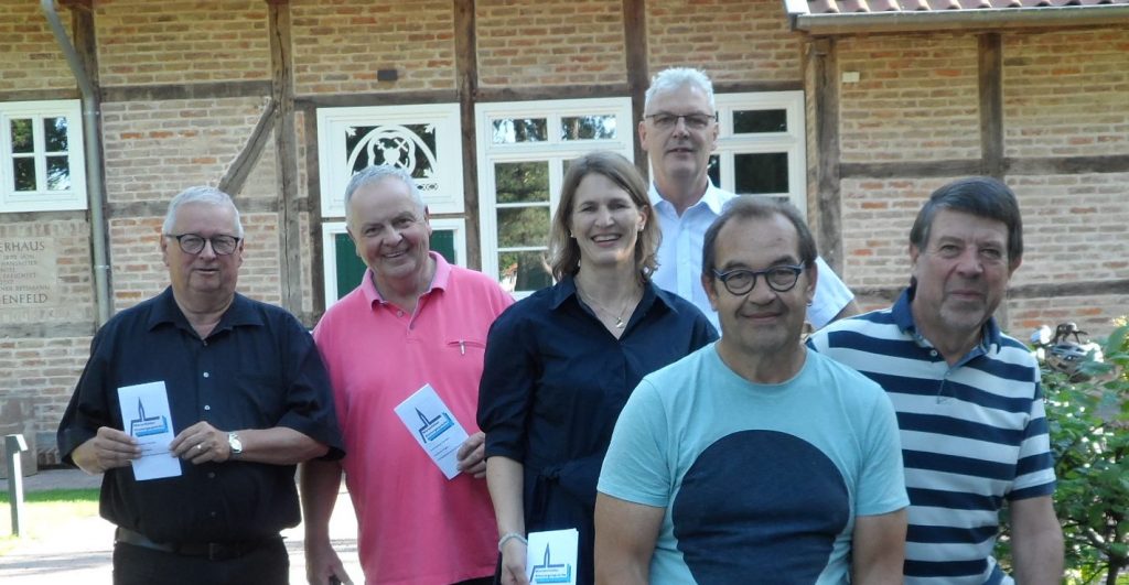 Acht engagierte Personen planen und organisieren gemeinsam die Marienfelder Klostergespräche, die 2014/2015 zum ersten Mal durchgeführt wurden und nun in die achte Runde gehen (v.l. Martin Liebschwager, Hermann Hecker, Sonja Thiemt, Albrecht Pförtner, Michael Kirk und Norbert Daut. Es fehlen auf dem Foto Dr. Barbara Flötotte und Karin Kirchner).